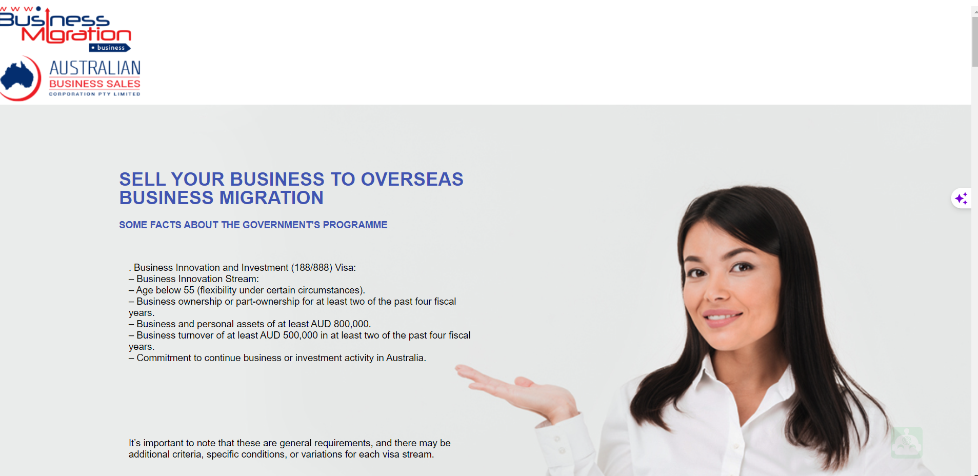 We Sell Nationally and Internationally for the overseas Business Migration Business Buyer market.